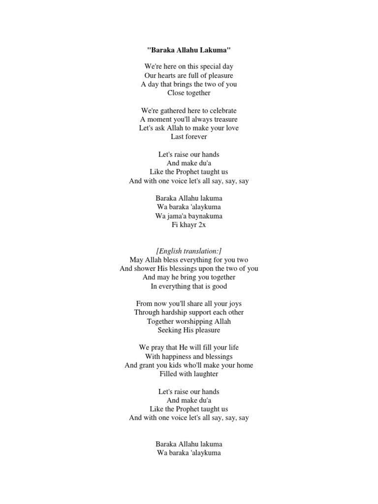 Barakallahu Lakuma : Our hearts are full of pleasure.