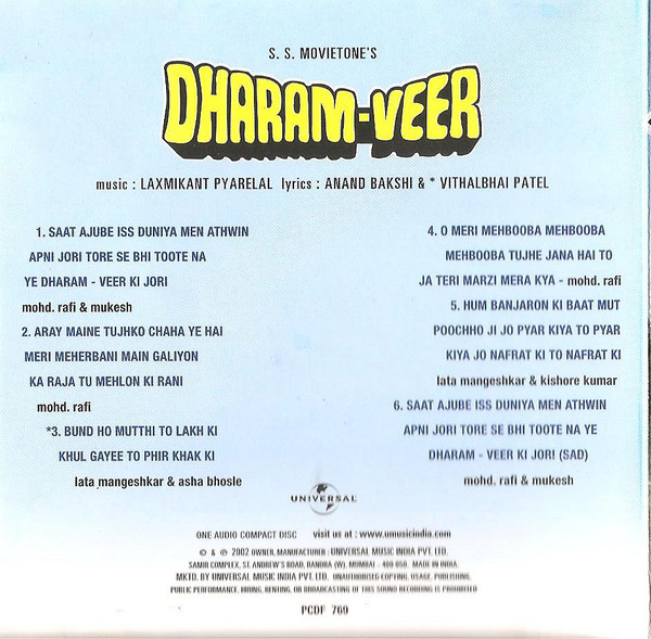 Dharam Veer 1977 Mp3 : Saat ajube is duniya mein (dharam veer/soundtrack version).