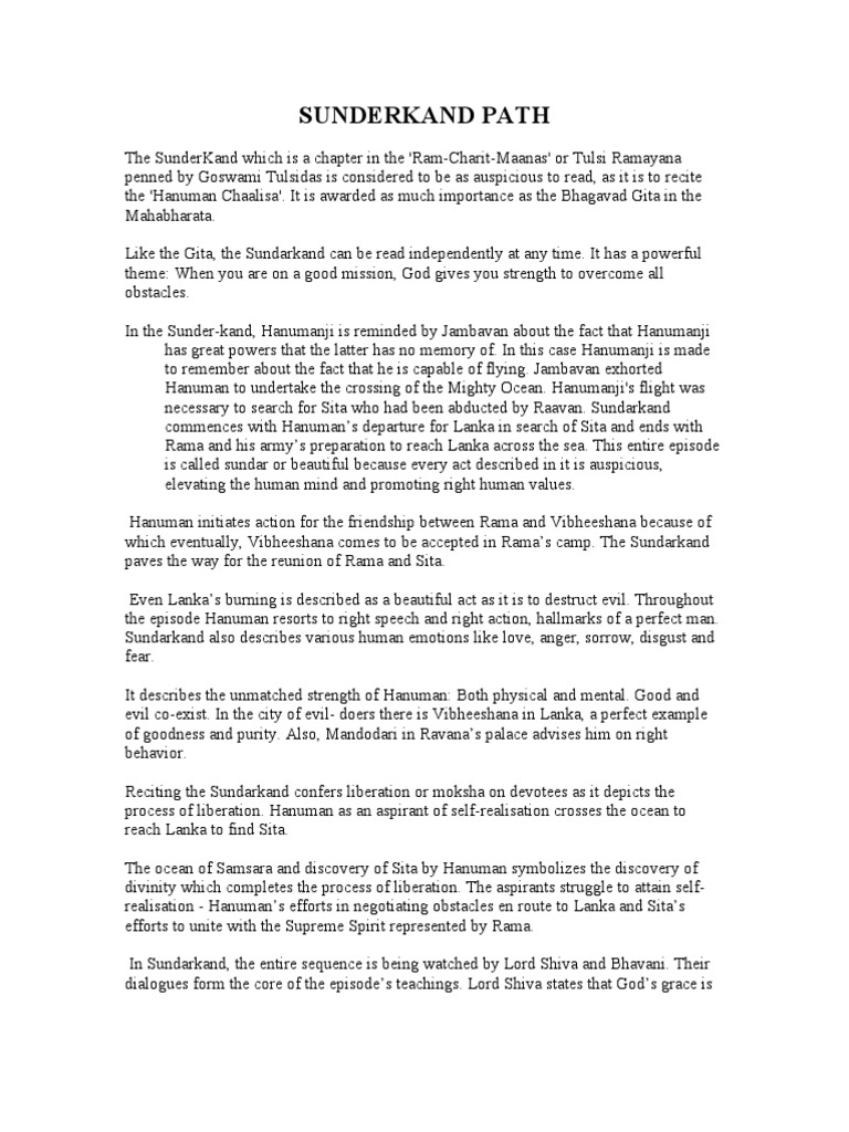 Sundarkand Sunderkand Ramayan Hindi Reading And Writing Youtube Peaceful, without any sins, one who gives liberation, brahma & shambu have served you greatest of all the devatas, one who is seen in the human form by maya, one who washes all our sins, full of pity, best among the raghuvanshi and the greatest of all kings shree rama.