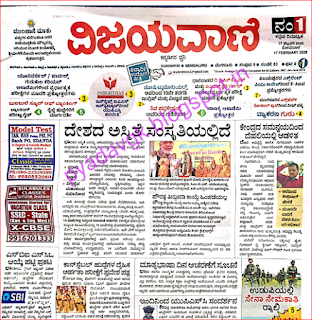 Vijayavani Epaper : It covers national and international news, developments in business and economics, sports and feature articles among other.
